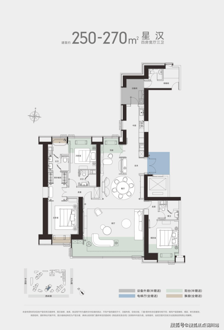 比如建面约250-270㎡,每个开窗面均有阳台赠送