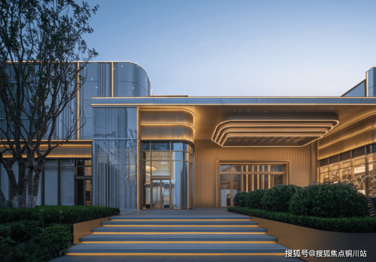 中央大门选用了奢华的香槟金色铝板,彰显了极致的奢华感;两侧商业空间则以简约的铝板和玻璃造型,凸显艺术氛围。商业单元间的暖色调铝板形成了流畅的线条,加强了各部分之间的联系,使整个建筑融为一体。灰白色的静谧艺术感与金色的奢华大气相得益彰,巧妙融合,共同演绎了一种时尚而高端的艺术风格。