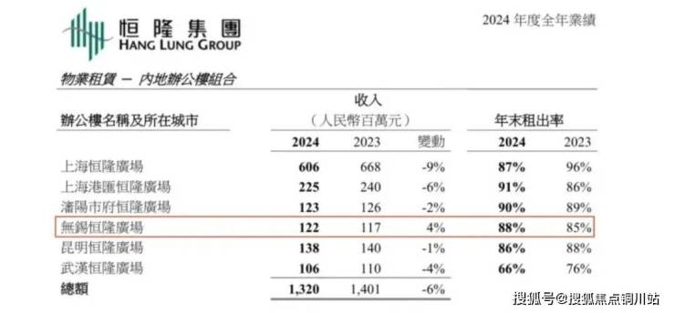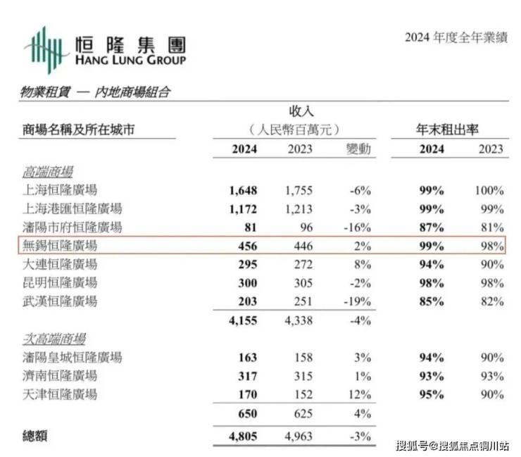 此外,2024年,无锡恒隆广场也是恒隆地产唯二商场物业租赁收入处于增长的高端商场。2024年末商场的出租率达到了99%。