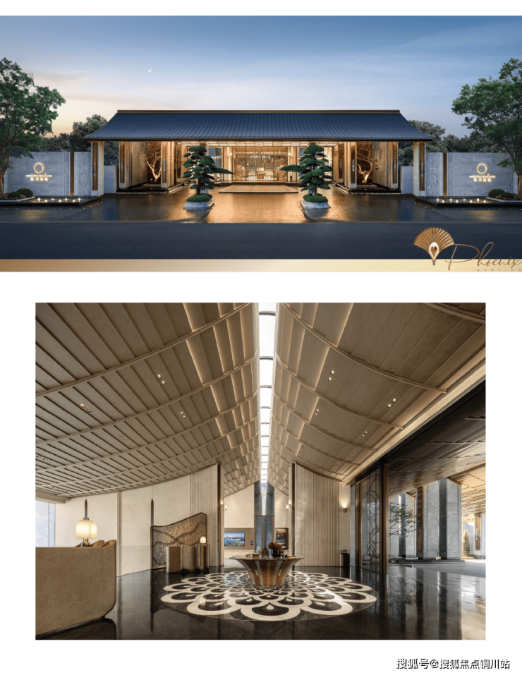 当潮鸣人物的视野履迹全球,在世界审美与东方精神的交融处,凤起潮鸣以“东意西境”的设计理念,勾勒出美中有真我的栖居理想。设计师以古代礼冠冕旒为设计灵感,构筑约85米长的“凤起冕旒”华贵门仪。整体门仪则延续东方屋檐的优雅曲线,以三曲面造型勾勒出灵动天际线,诠释恒久珍藏之美。