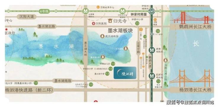 汉阳二环核心,墨水湖东南岸。交通路网四通八达、二环内最大湖泊公园、全区顶配教育资源,奢华配套定义汉阳四代生活。