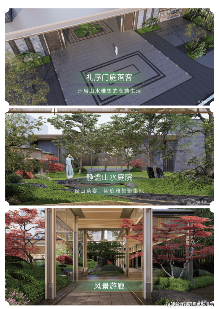 中式园林因其造价高昂一直都是豪宅的标配。项目打造“一环三境十二景”汉阳首个新中式园林。“归家三境”体现高门大户的三重归家礼序,“东方美学12景”展现东方文化与空间美学。