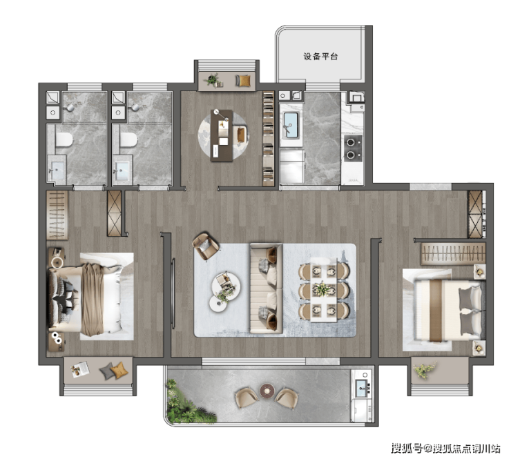熙悦春秋建面约128㎡的科技四房,以科学布局与精工细节,打造理想居所。