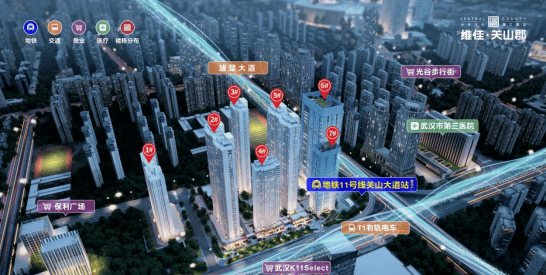 维佳关山郡位于东湖高新区雄楚大道与关山大道交汇处,地处光谷核心 “三纵三横” 主轴的黄金中心点。这里是关山大道的核心地段,被称为大光谷发展的起步区域,也是大光谷区域发展成熟度最高的板块。项目斜对面就是光谷 K11,周边还有武汉保利广场、世界城广场、大洋百货等众多知名商业体,商业氛围浓厚,能够满足居民多样化的消费需求。