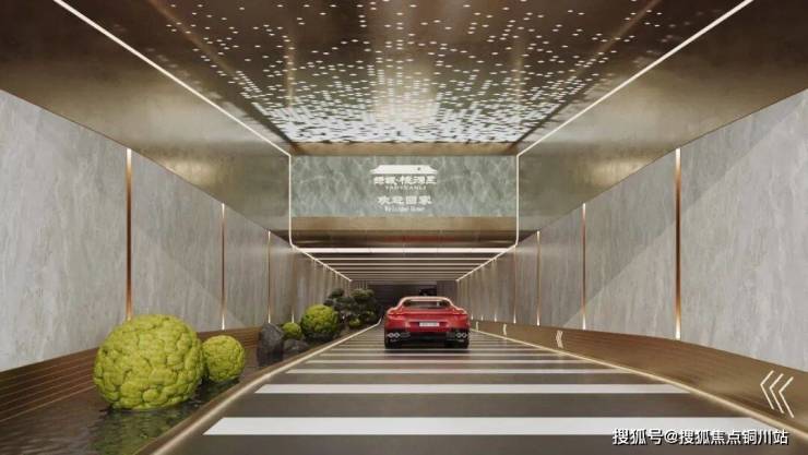 比如,地库入口微景观。地库的一侧设置了小景,将绿植等自然元素景观融入其中,通透干净的归家之路上也充满了酒店仪式感。