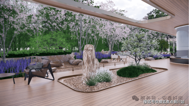 项目采用公建化外立面,构建绿岛归家大堂/入户门,还打造了泛会所(含瑜伽室&健身房等)和林下私家花园。