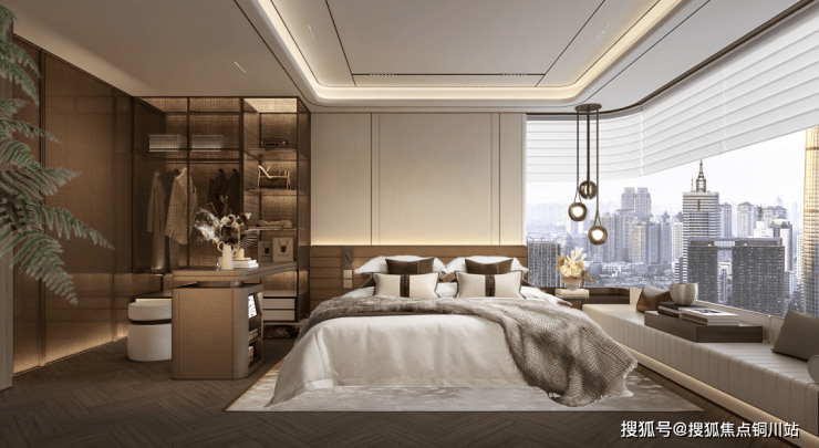 270°弧形转角窗打破传统直角约束,最大化采光面,实现室内外景观的无界融合(注:270°弧形转角窗为一期设计,不对后期产品设计做承诺)。
