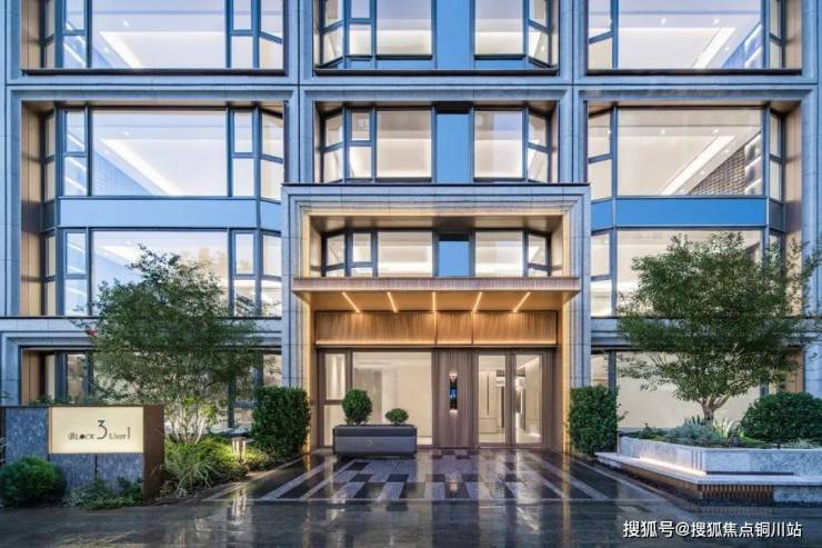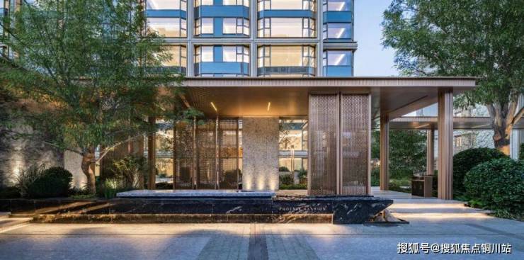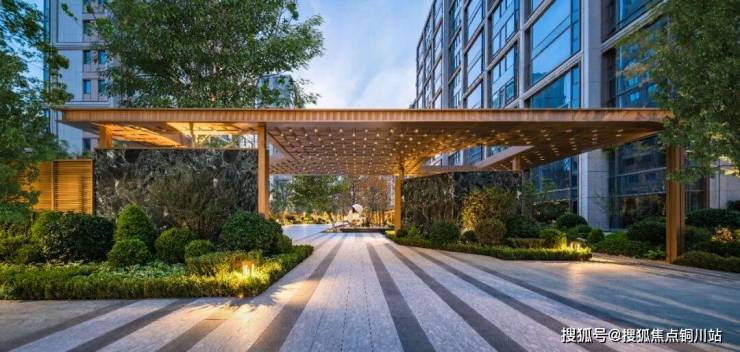入户空间以低矮的艺术景墙结合绿植墙、乔灌组团等,层次丰富,充满序列感和仪式感。