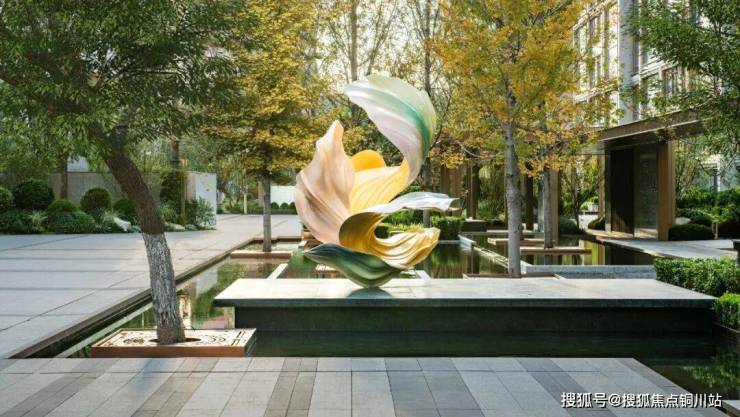 与此同时,还围合了一处林泉水院,作为多功能邻里空间,集室外阅读、林下听泉、艺术品鉴、品茗交谈、休闲会客于一体。
