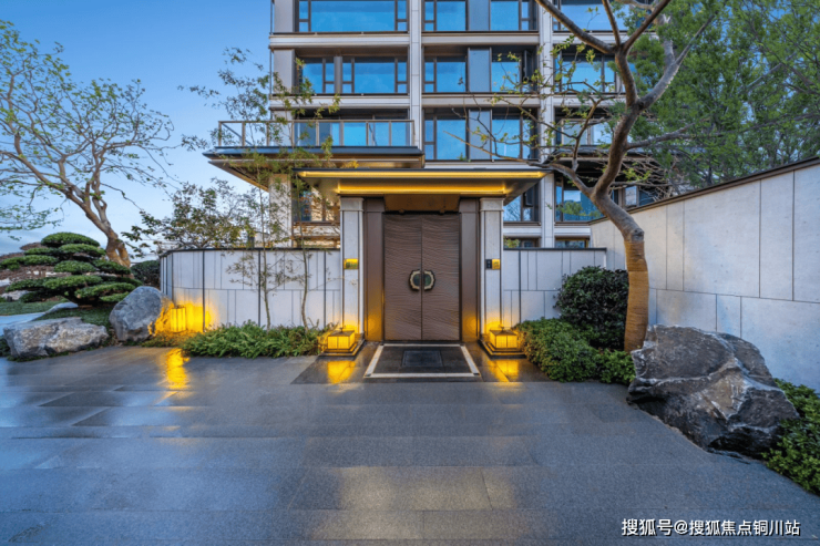 两颗百年罗汉松迎宾、顶奢酒店同款的蓝翡翠、艾伦蓝、绿野仙踪奢石,与古铜金属一同锻造入门庭,极具张力的奢华之美,散发豪宅应有的领地感。