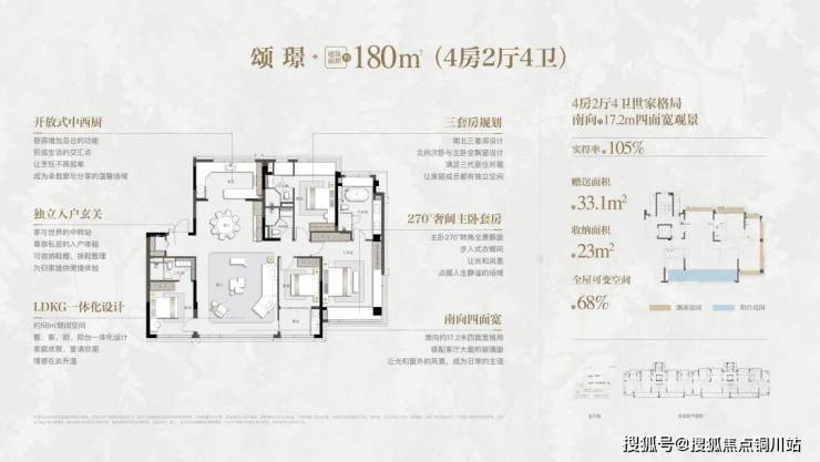 全包围式附赠(阳台/飘窗), 实现赠送率最大化,高实际得房率(98.7%-105%) ;