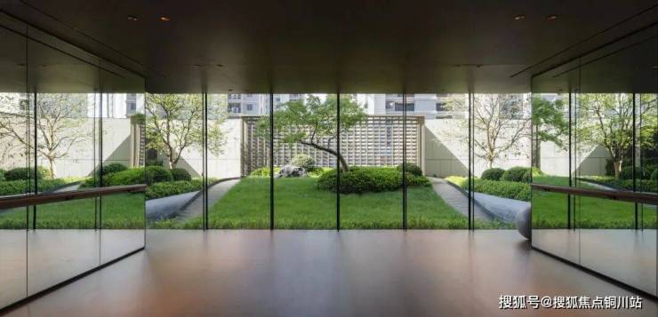 在有限的内庭院中塑造人工高差的半山半水,营造柔软的景观视线屏障,打造园境水院内盒。收放自如的空间形态,给人应对自如的自由形态,功能、绿意、水景,所有自然质感无界交融,形成一种高级的生活智慧。