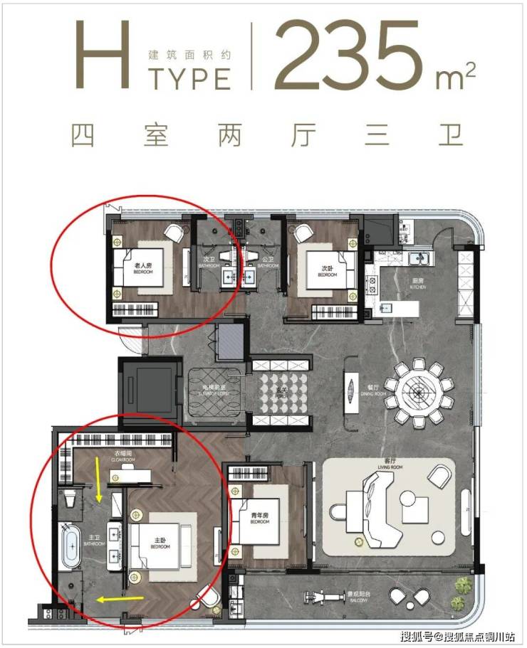 但元庐星启235户型的双套房布局,我认为是市面上同等面积大平层的“顶配”。