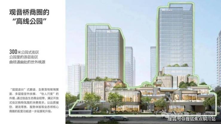 在层层退台的自然高差中,延展出一片城市绿岛,打破商业与生态的边界。