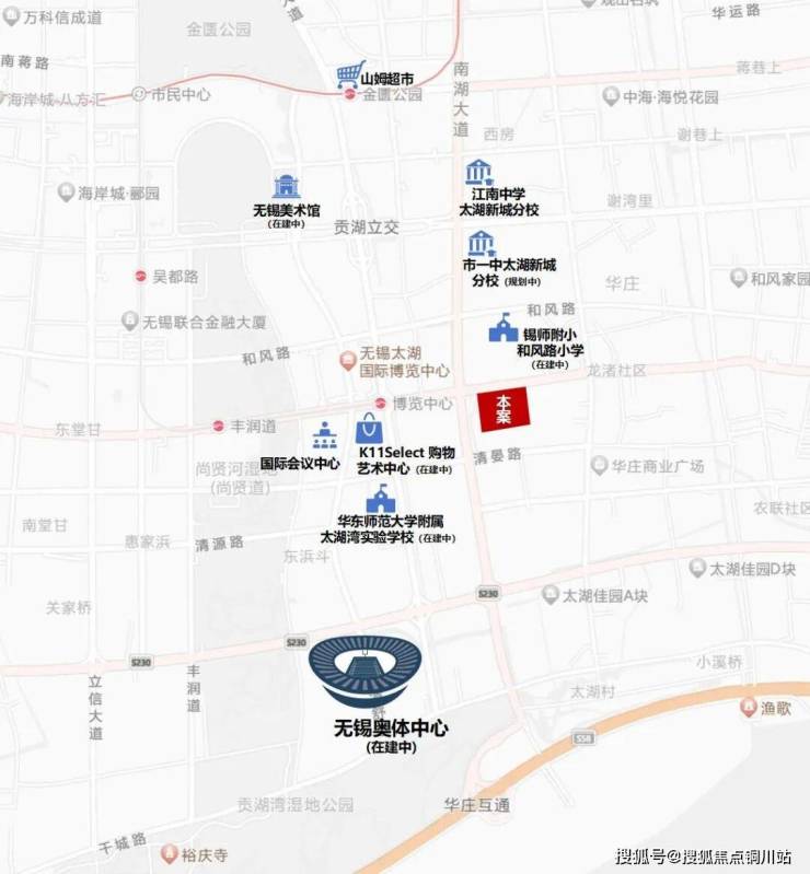 地块周围在建的奥体中心、K11 Select和规划的无锡中心,以及无锡海岸城、山姆会员店、太湖国际博览中心、国际会议中心、狄邦文理学校、融成观顺实验小学、江南大学附属医院、尚贤河湿地公园等成熟配套为高品质人居赋能。