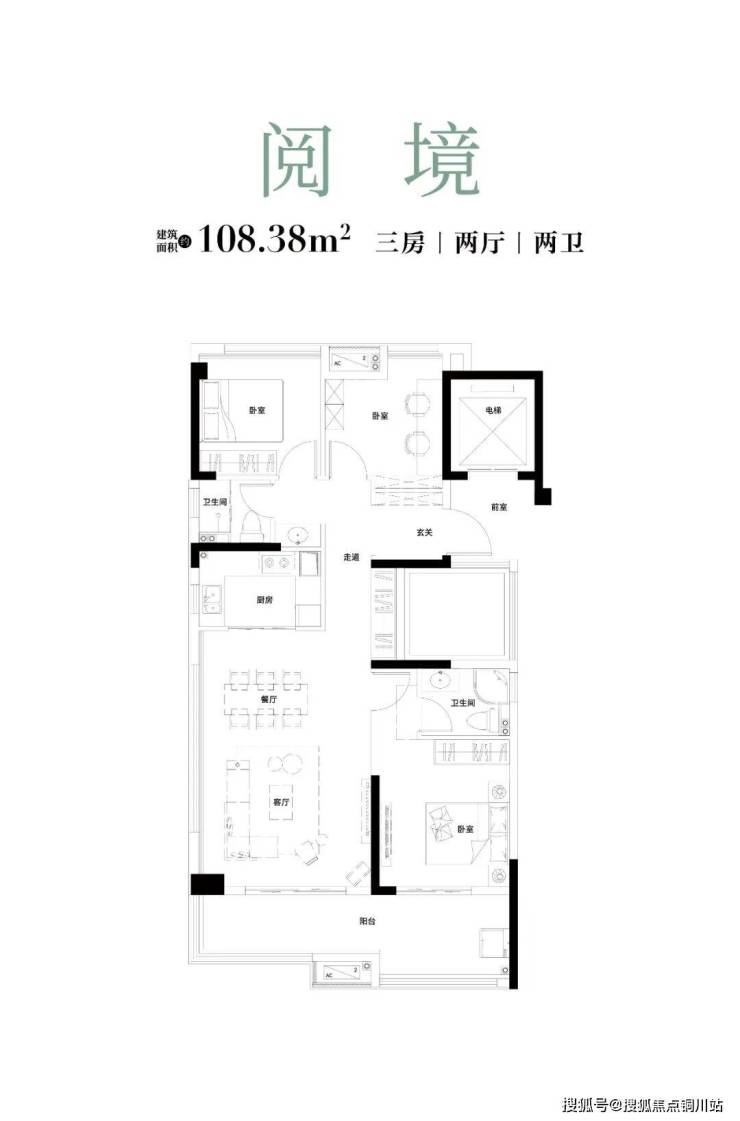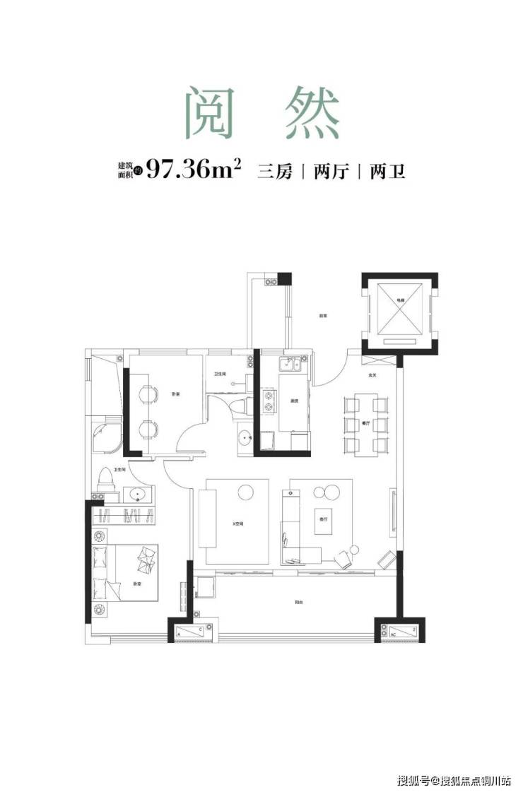 该户型位于2号楼的西边套,两开间朝南,三面采光的南北通透户型。该户型同样是带有独立电梯前室,可实现内外双玄关。