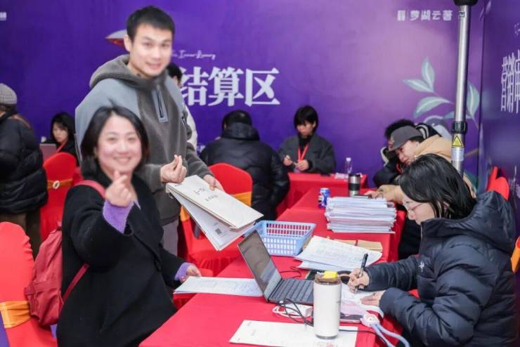 交房当天,前来办理交房的业主有序地进入活动现场,业主在工作人员的指引下,进行签到、资料审核、领取钥匙、交接验房等步骤。