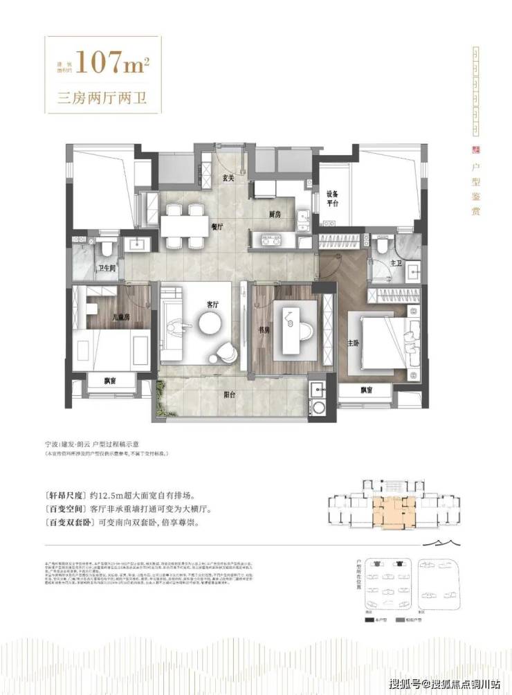 最重要的就是建发朗云为宁波改善客群量身定做的建面约107-169㎡阔境产品。
