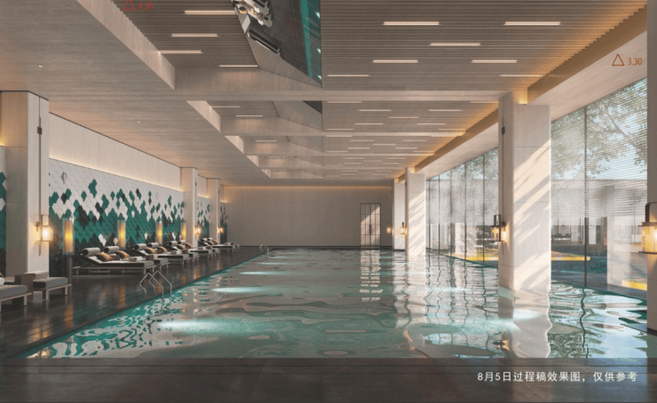 室内恒温泳池,更是对业主献上的大礼,以雕刻营造对比,将镜面、水波、灯带无瑕装配,好似水天相连,无边无尽。而四季恒温,更是能够让业主不避寒暑,尽情徜徉这水中天地。