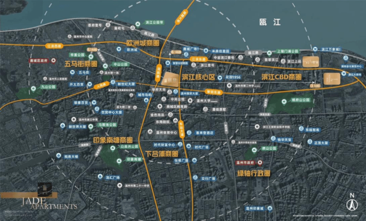 坐拥千亿配套,尽揽城芯风云。华润 · 温州润府落位中轴奇点上,外揽滨江豪宅带:首府壹号、曼哈屯、时代滨江、鹿城广场、中梁滨江壹号、翡翠滨江、滨江上品等。内拥老牌豪宅圈:中央公馆、金色尚品、原墅景园等,彰显温州追求高品质生活的范本区。方圆半径三公里,涵盖大半历史文化街区,荟萃城市精华,铸就滨江核心高端住宅区范本。