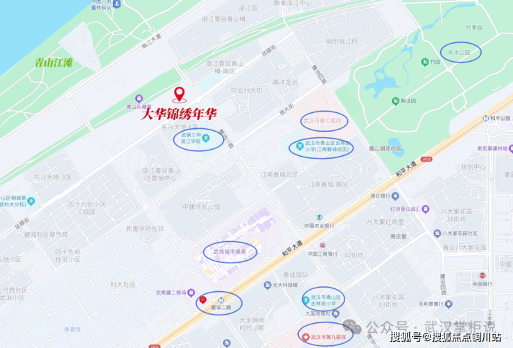 项目位于青山区建设三路与抚顺街的交汇处,属于青山滨江板块,与青山江滩直线距离仅200多米。