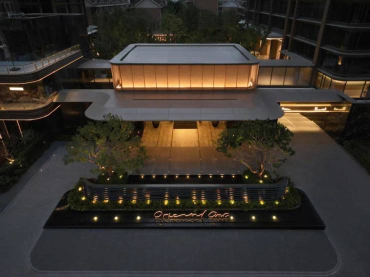 项目入口处打造酒店式落客流线,入口处约8米悬挑雨篷提升了门庭前场的气势,展现了高门大户的尊贵气度。