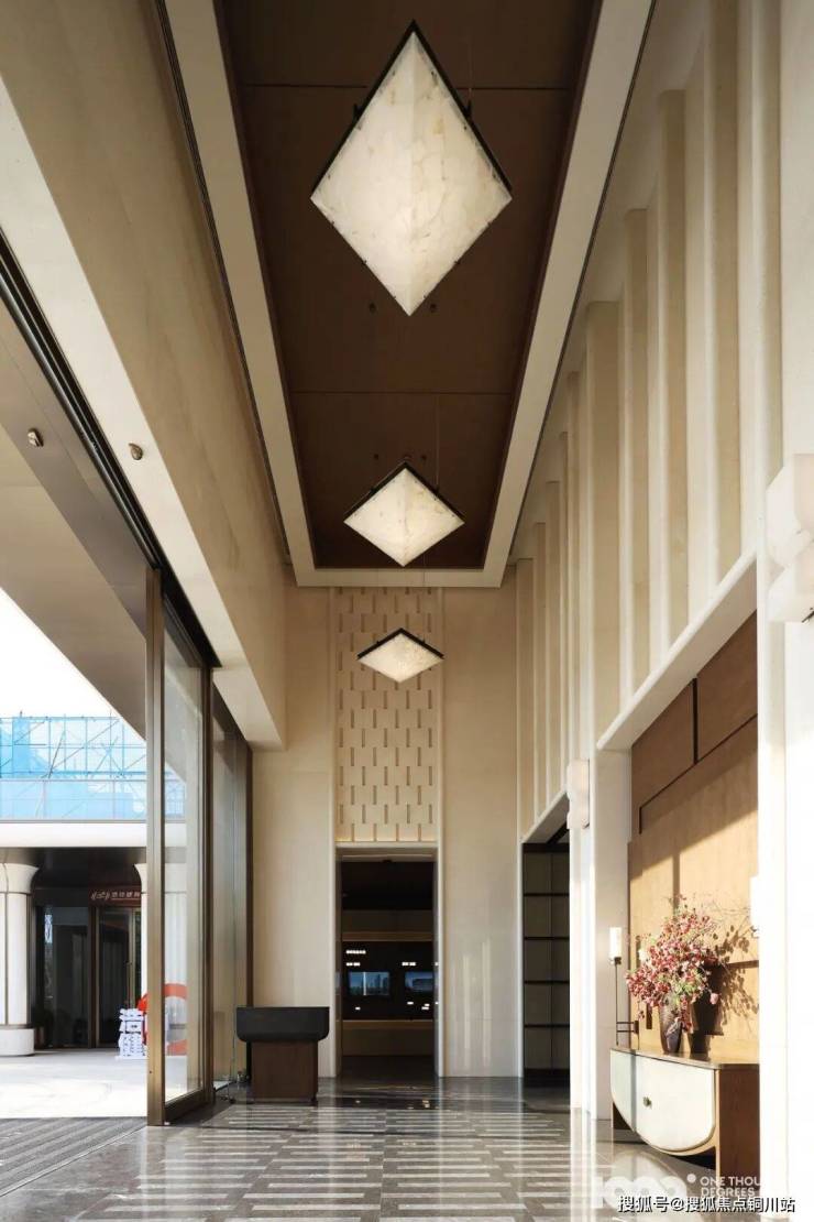 穿过前庭广场,约9米高的社区归家大堂呈现在你的眼前。