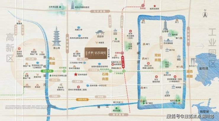教育配套:直线 3km 范围内有 43 个幼儿园、29 个小学、12 个中学,如苏州市金阊外国语实验学校、三元实验小学校、苏州市第五中学等。