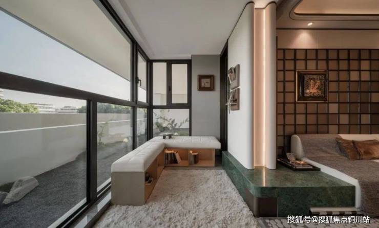 还有充足的灵动空间,不仅全卧配备飘窗,还打造了1.5个开间面宽的阳台,并在一侧做了转角玻璃的设计,让阳台的采光、视野更加优秀!