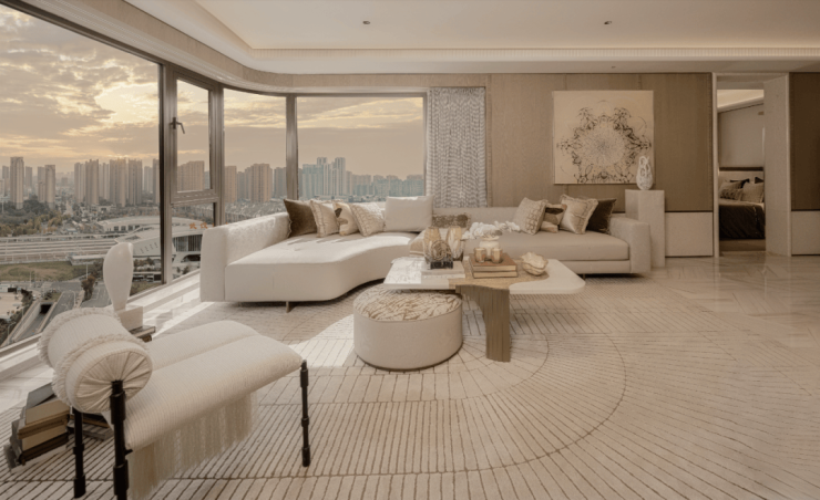 最震撼的是270°全景舱,将阳光、风景最大限度地引入室内。这种以往只在顶级大平层中才使用的设计,被带入了改善型户型,带来的是一种跃级的空间奢侈感。