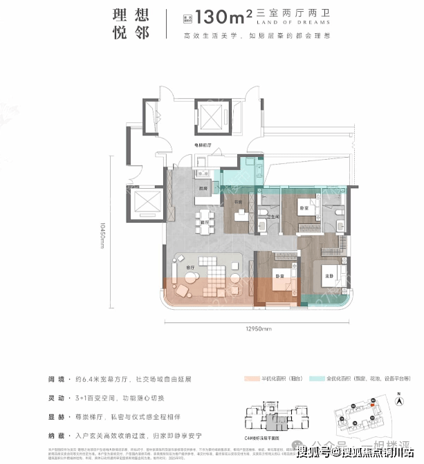 其中,建面约130平3+1房是武汉理想之地起步级户型: