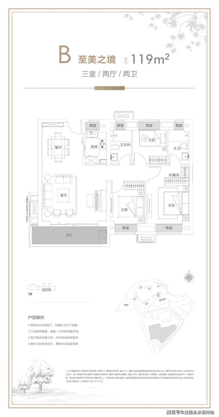 该户型最大特点是具有约 5.1米开间的客厅,和约5.5米宽的南向大阳台。能够将客厅尺度做到如此之大的,板块内同面积段在售楼盘也只有华发公园首府一家。