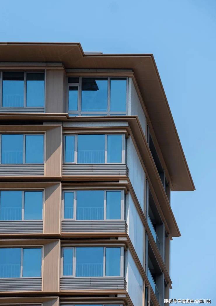 金属挑檐以利落质感呼应传统飞檐“如鸟斯革”的灵动、“如翚斯飞”的光彩,木纹铝板凭温润肌理诉说时光沉淀之美,为立面注入温度。这般设计让莲塘华府在众多楼盘中脱颖而出,成为城市亮丽风景线。