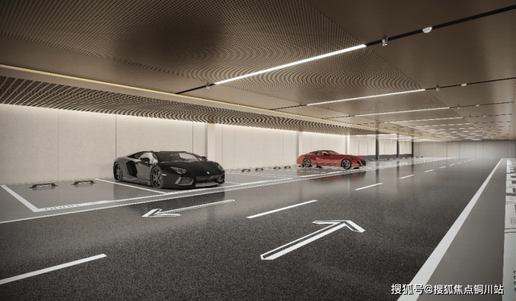 入地库时灯随车亮、进入内部还有为不同车型设计的精装车位、私家车位,以及加大车位。