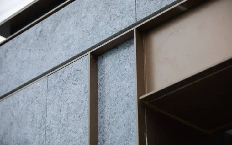 石材肌理的反复比对:进场石材不仅经过严格筛选,上墙后还会根据整体效果进行二次调整。