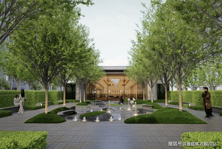 走进社区大门,是一方庭院。两侧的会所与庭院,形成室内外景观交融。会所景观化的酒店式设计,不动声色地带入“度假感”。