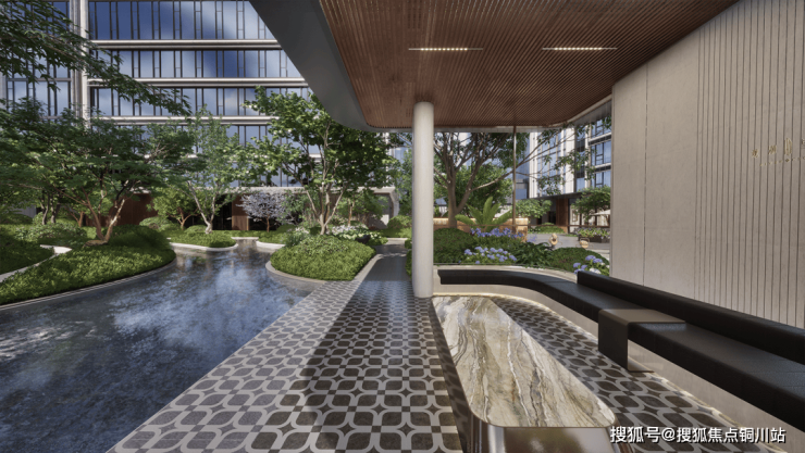 华润置地用绘画方式打造景观,以致敬 20 世纪极有天赋的景观设计师——布雷·马克思。运用大量曲线和强烈的平面图案,带来“第五立面”的艺术观感。