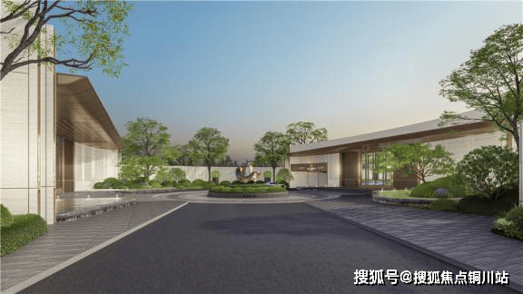 门头材质尽显奢华,落客区并不是简单地将门前广场、花坛与小区大门进行堆砌设计,而是在设计动线时从马路归家方向单独拐了一个弯,将车辆引导到一个半开放式的巷子内进行落客。