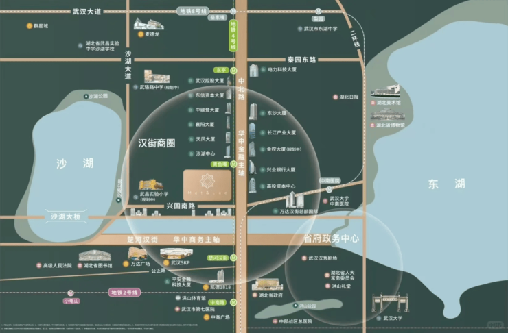 中北路作为武昌金融主轴,土地开发已近饱和,目前看来已无新增住宅供地。项目位于武昌内环中北路与沙湖交汇处,是沙湖板块最后一块住宅用地,具备不可复制的区位稀缺性。