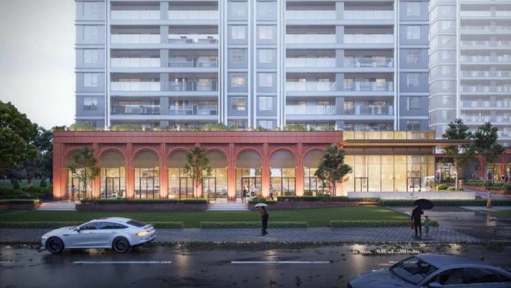 承续红房子的建筑风格,以红砖立面搭配金属线条,弧形拱门碰撞玻璃幕墙,营造尺度宜人、层次丰富的摩登街区。