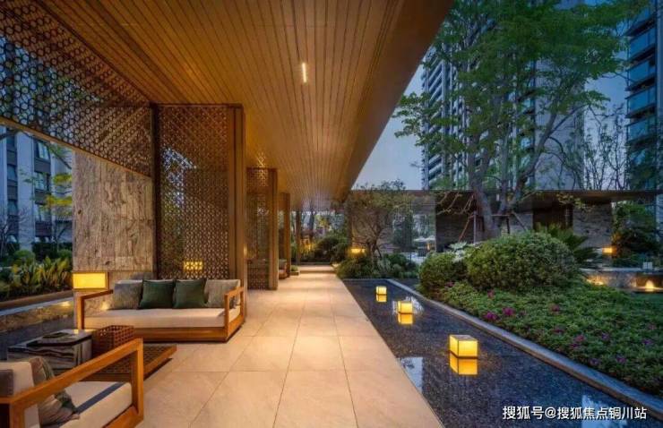 步入A地块约8000㎡的实景中央景观区,一场充满“国际范”的度假之旅就此开启。大到对称的丛生乌桕树阵、灵动的龙鳞叠水景墙、大小戏水池的层次排布,小到格栅、小品等装饰细节,皆匠心独运。