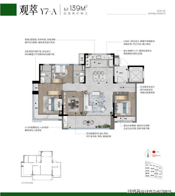 ·全空间高配设计,每个空间都有开敞的景观面,全屋丰盈的收纳系统,也能承载全家人的需求。