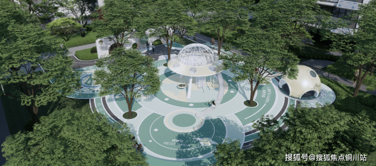 例如,项目通过建筑退缩释放更多公共空间,更重金代建约7.1万方(相当于10个标准足球场大小)和颂公园,公园整体呈带状贯穿社区西侧,融合露营场景、休闲场景、运动场景、游乐场景、剧院场景、社交场景、聚会场景七大场景功能于一体的全龄化活力空间,旨在打造成区域内首个自然与人文交融的地标生态链。