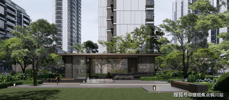 楼宇区域集萃和颂核心景观组团——童趣乐园&会客厅,设置了休闲座椅、茶几、遮阳伞、树池坐凳……满足全龄段业主休憩、会友所需。