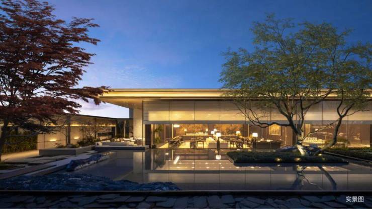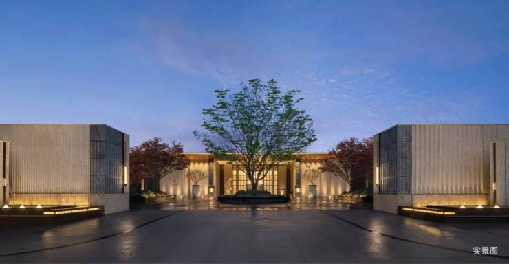 从入口开始,世家望族的归家意境便根植入场地,气势恢宏的双景墙大门与中心环岛落客区,勾勒出大宅归家的仪式感与庄重感。门前苍劲的榔榆家族树撑起浓荫的穹顶,庇护家族兴盛。伴着耳畔奢石水景流淌出的叮咚清响,从容行过定制地毯式铺装,车马合院的迎宾气势与贵雅礼序自然融于当代建筑肌理。