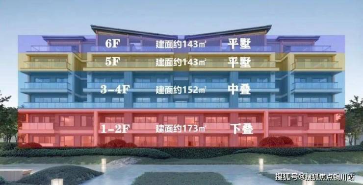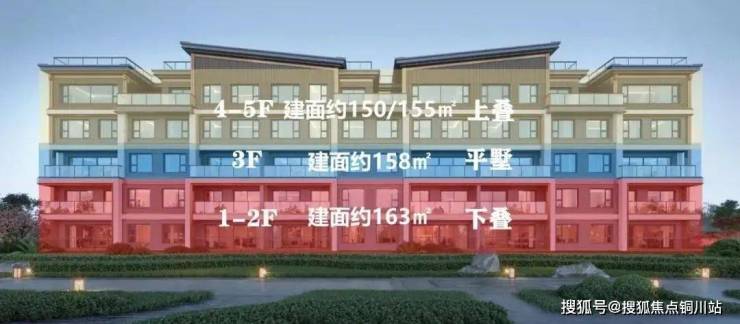6层组合墅:中轴区采用经典双叠层+平层结构,外围区创新设置三重立体单元