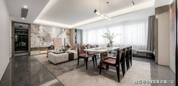 进入室内,整个餐客厅空间宽敞有序,既拓宽了生活动线尺度,又显示出改善的格调。