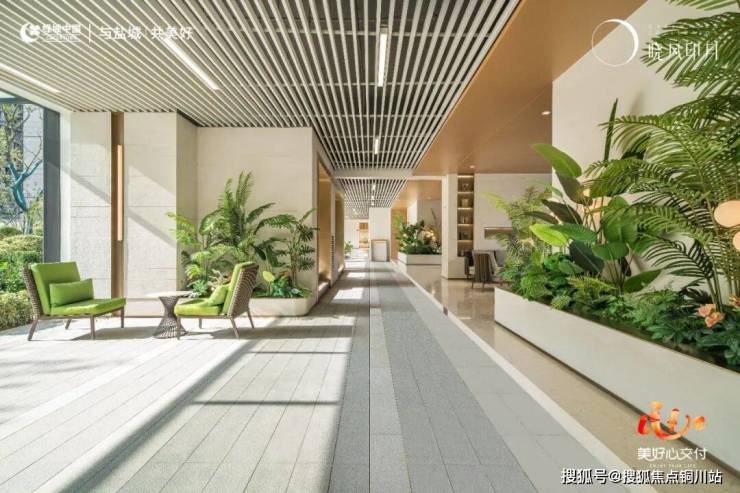 步入园区,约5000方景观园林组团次第铺陈,迎宾水景、户外泳池、阳光草坪及各个精心雕琢的主题园境,让人在冬日收获了别样的生机。林木亭亭如盖,灌木郁郁葱葱,层层叠叠的绿意,让人忍不住一一漫赏,心旷神怡。