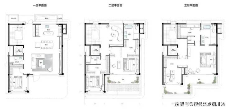 项目合院281-382㎡面积段户型,户型亮点:三套房设计、宅前个性展示区、归家仪式型门头、7.1米超宽起居厅、可变型第二家庭厅。