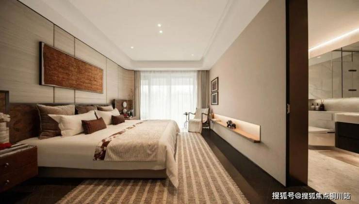 二者通过香槟色金属,浅灰色石材、通透玻璃与东方意象的现代表达实现风格统一,构建高端居住氛围。